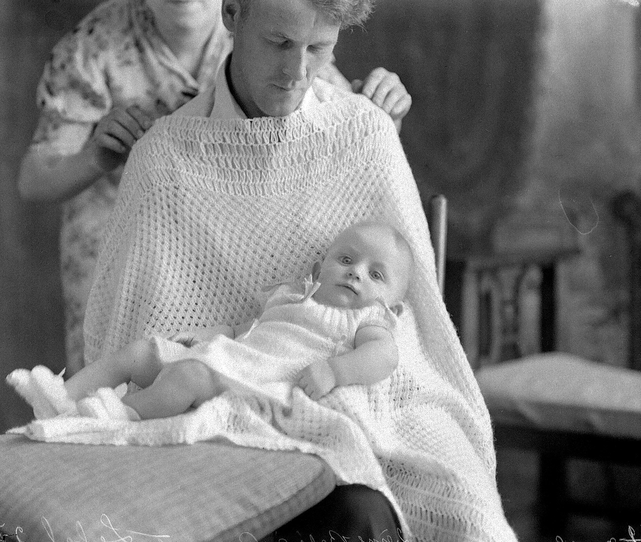 … et ce qu’on va faire, c’est vraiment par contact que la photographie va se faire, mais il faut apporter tout ça, vraiment on l’apporte sur le bord de la fenêtre habituellement, c’est vraiment la source de lumière la meilleure. Ensuite, évidemment, on enlève tout ça. Ça, ça demande de connaître vraiment vraiment la photo pour être capable de savoir qu’à telle journée, tel ensoleillement, c’est à peu près tant de minutes selon le négatif; il faut beaucoup de connaissances. Et là, évidemment, le négatif aurait été en contact avec la feuille, ce que ça donne, vous remarquez que c’est exactement de la même grandeur parce que c’est en contact et ça a été fait. Évidemment, pour enjoliver les gens avaient des coupes papier avec de la dentelle tout le tour. Ça, ça se faisait autant dans les campagnes que dans les grandes villes, même des studios comme Notman à Montréal, il y avait des châssis-presse. Tout ça, évidemment, c’était quand il n’y avait pas d’électricité. Quand l’électricité est arrivée au village, en 1929, à ce moment-là, évidemment, c’était plus facile pour le studio puis pour tout le travail, mais elle a quand même continué, puis les gens aussi ont continué à faire de la photographie par contact, ça a vraiment été quelque chose qui a été très important. Alors, on referme le dos.